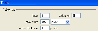 Enter 1 in rows box, __ in columns box (the number of columns will depend on the number of sections in your document that will receive a Named Anchor), for this tutorial our document is going to have 8 sections.