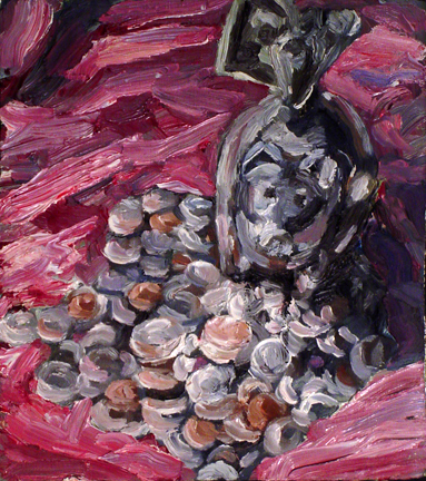 Trickledown. 11” x10”. Oil on Card. 2003.