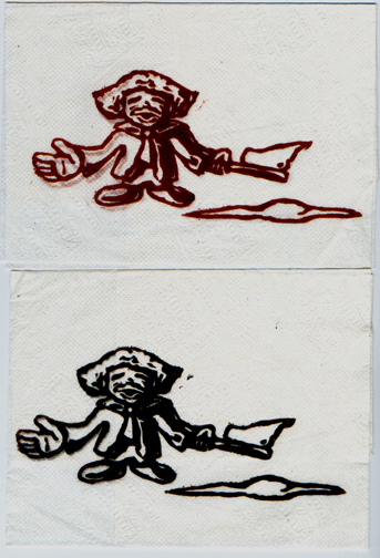 Ronald. 6” x 5”. Woodcut on Napkin. 2003.
