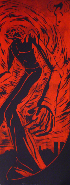 Hysterical Patriotism II. 30” x 14”. Woodcut on Paper. 2004.