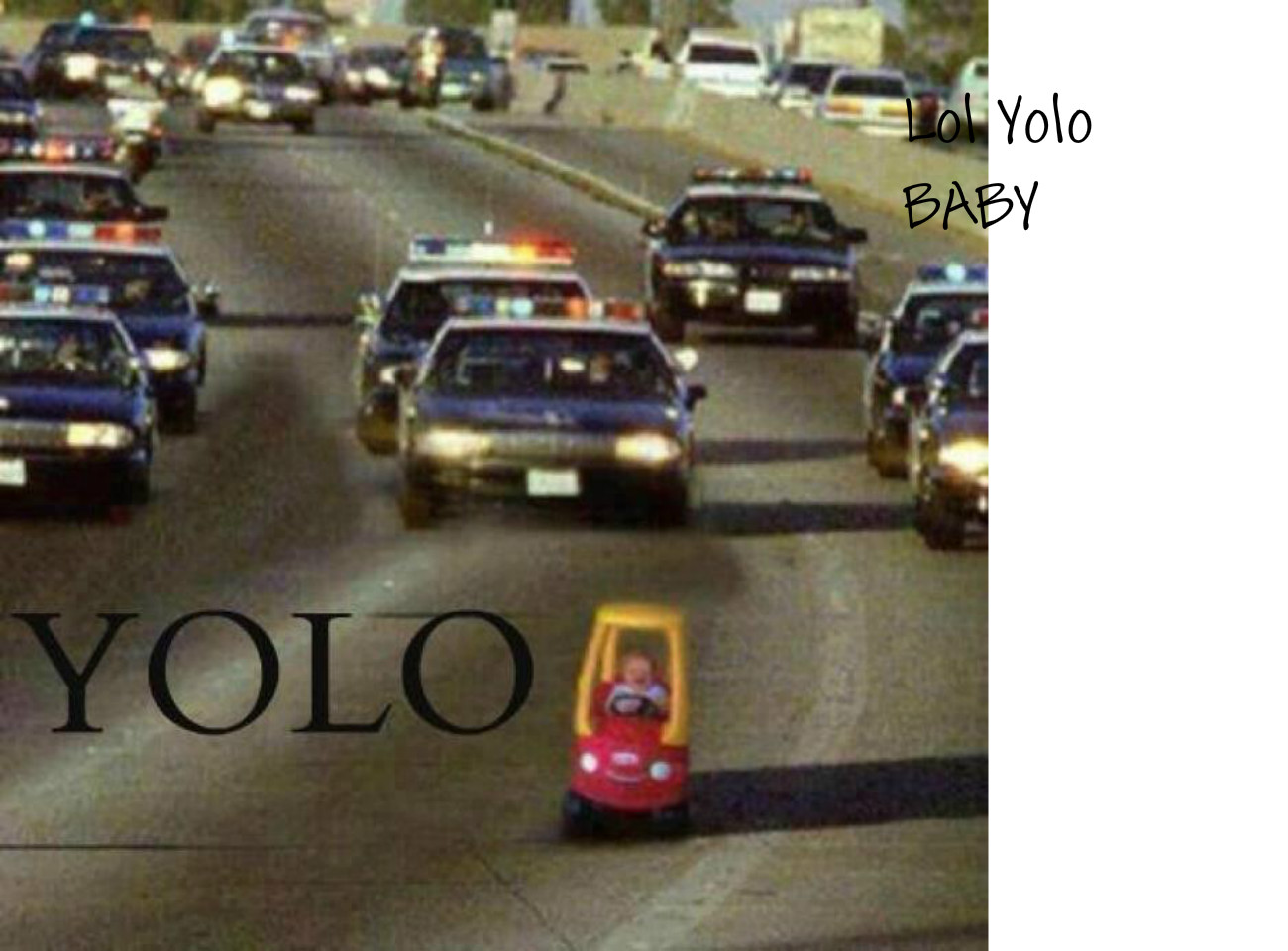 The picture to the far left displays a baby yoloing on a highway as he