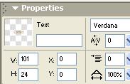 Step 5. In the Property toolbar at the bottom of your Document Window, define the Width (W) and Height (H) as 101, 24; and define the X and Y coordinates as 0,0.